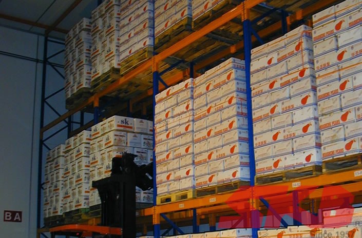 ­­SKB Double Pallet Racking is an alternative to selective pallet racking with storage of two pallets deep instead of one. The Double-deep Pallet Racking requires the use of a special pallet handling equipment catered with deeper forks such as the reach truck. Necessary counterbalance on the truck needs to be considered for these types of racking. While pallet storage increases up to 30% more than selective pallet racking, selectivity is reduced as it limits accessibility to the inner pallet.
