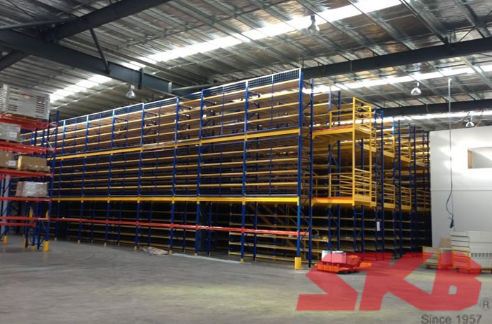SKB Long Span Shelving system is an easy-to-assemble system which is ideal for storage of large, heavy or odd shaped items. The system comprises a few components, frames, beams and decking platforms. The purpose-designed beams can load up to 2450mm length into the respective frames in seconds. Decking platforms can be either steel shelves or plywood. Additionally, it can also be designed to support a mezzanine floor overhead.